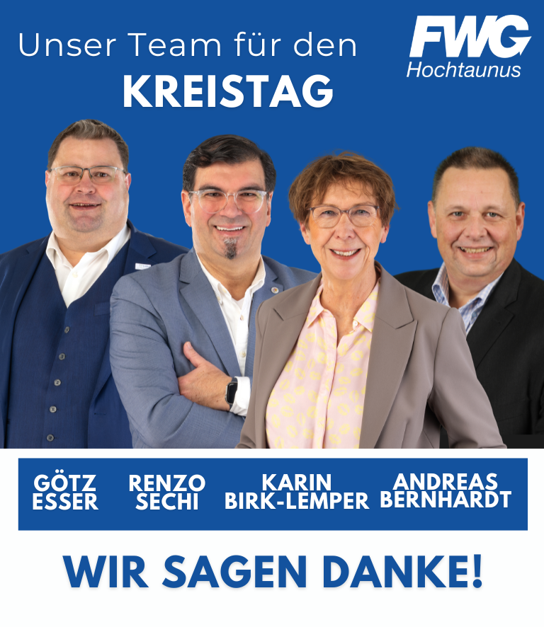 Die FWG Hochtaunus wird sich auch künftig mit Nachdruck dafür einsetzen, dass unser Hochtaunuskreis ein lebenswerter, starker und zukunftsfähiger Landkreis bleibt.