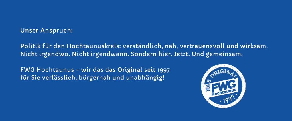 Wir setzen uns dafür ein, dass der Hochtaunuskreis ein lebenswerter Heimatort beleibt. Geprägt von starken Ortsgemeinschaften, kulturellem Engagement und einem vielfältigen Vereinsleben. Das Ehrenamt ist ein tragender Pfeiler unseres Miteinanders und wir wollen es dauerhaft unterstützen.